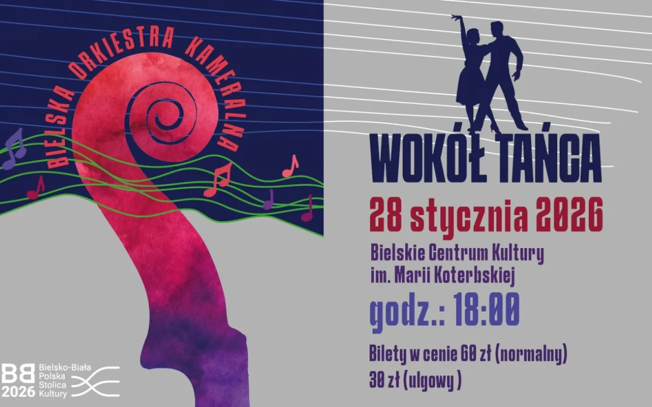 środa, 28 stycznia 2026, godz. 18:00Zbliżający się Koncert Bielskiej Orkiestry Kameralnej związany jest ściśle z tematem Tańca. Tańca, który jest inspiracją, ale także wyrazem świętowania nadejścia Nowego Roku i rozpoczęcia okresu Karnawału. Taniec zespolony z muzyką mocno wpisuje się kulturę danych miejsc i związanych z nimi zwyczajami.