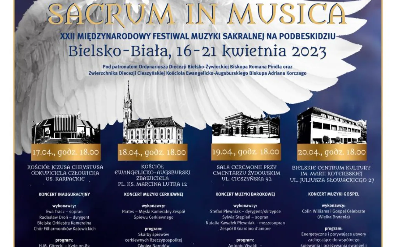 To będzie już 22. edycja Międzynarodowego Festiwalu Muzyki Sakralnej na Podbeskidziu. Tradycyjnie, zgodnie z ekumenicznym przesłaniem patronat objęli Ordynariusz Diecezji Bielsko-Żywieckiej ks. biskup Roman Pindel oraz Zwierzchnik Diecezji Cieszyńskiej Kościoła Ewangelicko-Augsburskiego ks. biskup Adrian Korczago.
