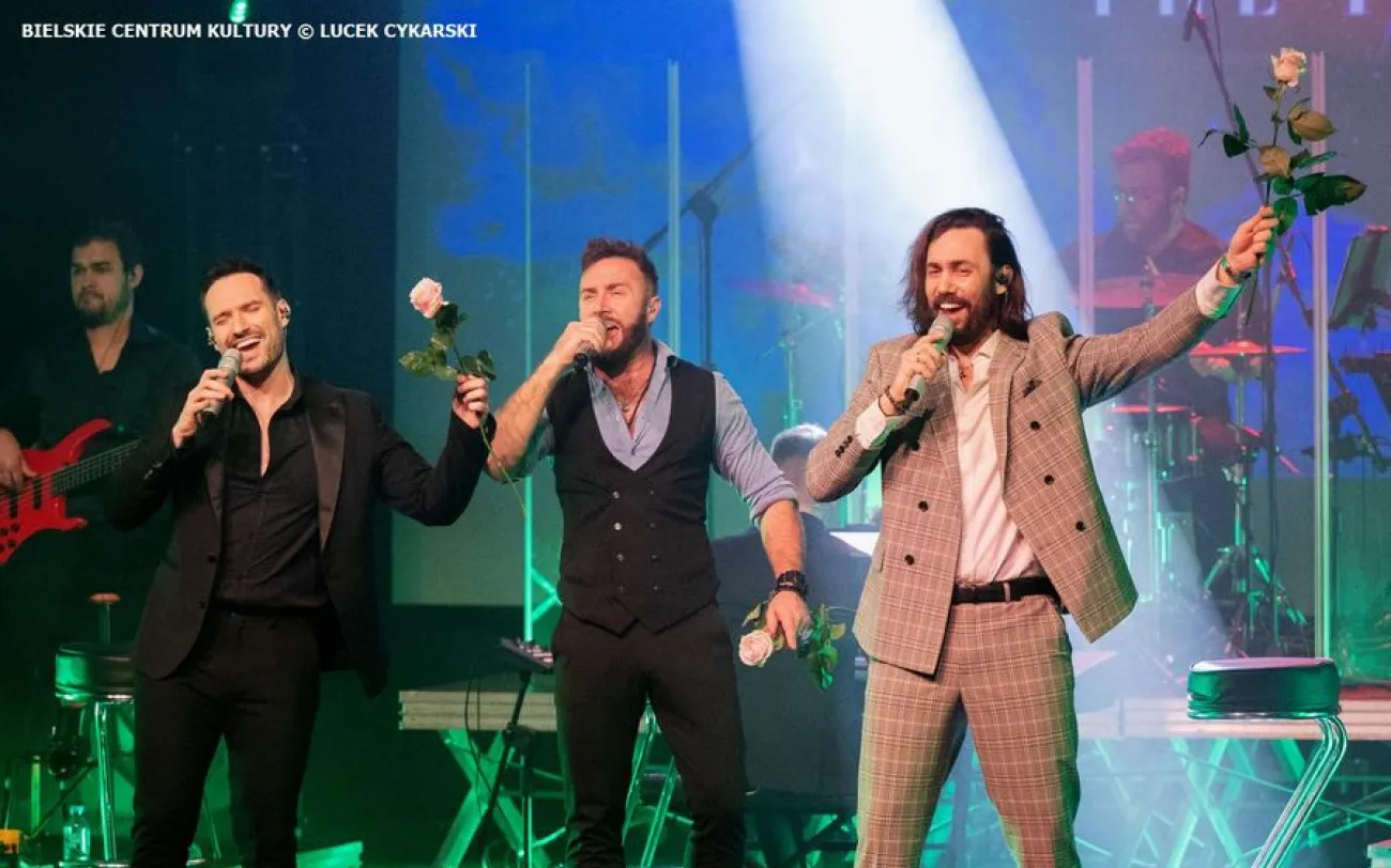 Przez półtorej godziny na scenie dominowała trójka wokalistów, jak w kalejdoskopie zmieniająca się pierwszoplanowymi rolami. Rozpoczęli od Bryana Adamsa, by czarować kolejnymi przebojami - od cohenowskiego Hallelujah, przez coraz bardziej klasyczne Grande Amore,You Rise Me Up, po polski przebój Goniąc kormorany, który w ich wykonaniu zabrzmiał zdecydowanie inaczej.